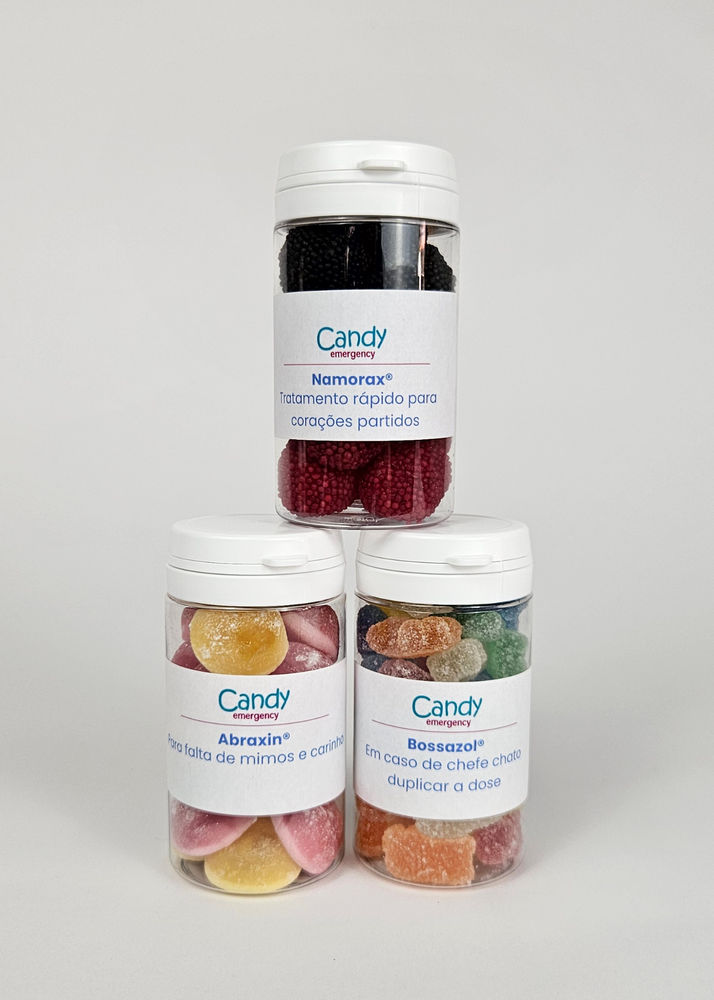 Decida qual a dose de felicidade que quer: mini, completa ou premium. Cada kit vem cheio de gomas e boa disposição!